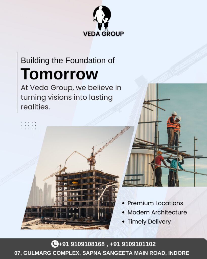 Recognized widely as the best construction company in Indore, Veda Group focuses on quality craftsmanship, premium materials, and timely delivery. Whether you’re searching for a construction company Indore, a reliable team for premium real estate development, or the best construction company near me, Veda Group continues to set new standards in excellence.